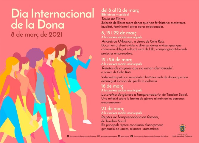 S’atraca el dia 8 de Març i com sempre volem promocionar les activitats que es realitzaran per si estau interessat en participar. Les entitats han fet un esforç per organitzar activitats segures i a l’hora no deixar de visualitzar aquest dia i la importància que té.